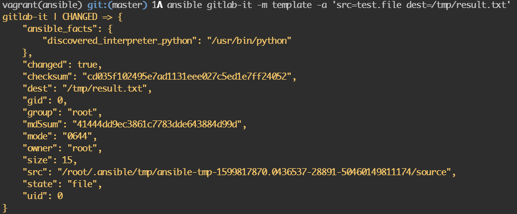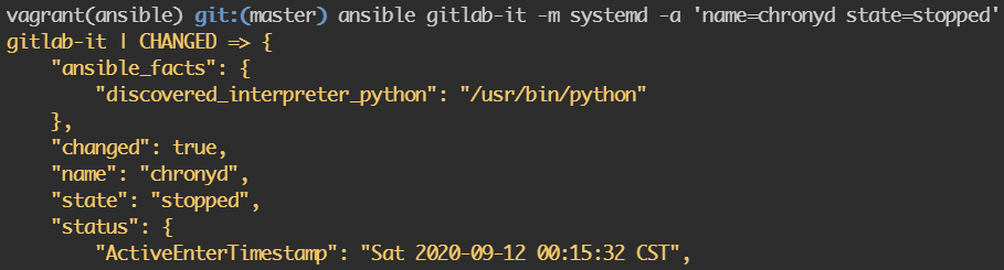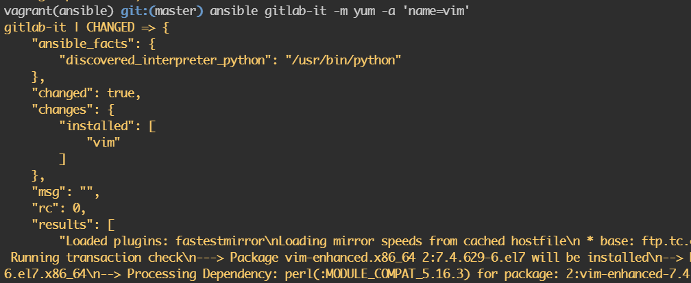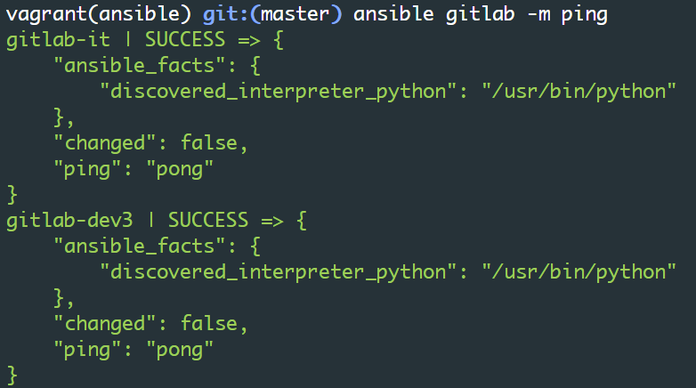 • ansible gitlab -m ping